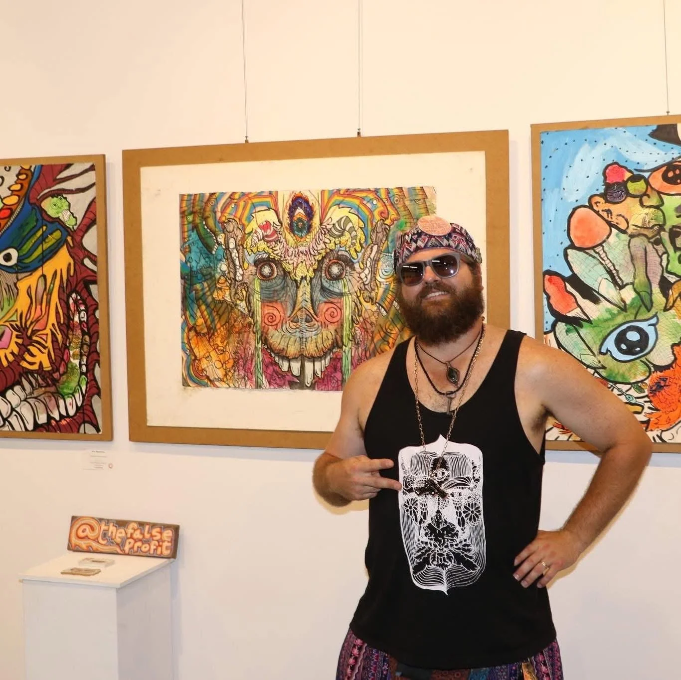 Since then, he has performed live painting at concerts, developing ongoing series like Rorschach, Gestalt & Experience, and cultivating his alter ego, The False Profit. It’s a persona that can only be described as an artistic need to build, destroy, and create through performance and visual art.